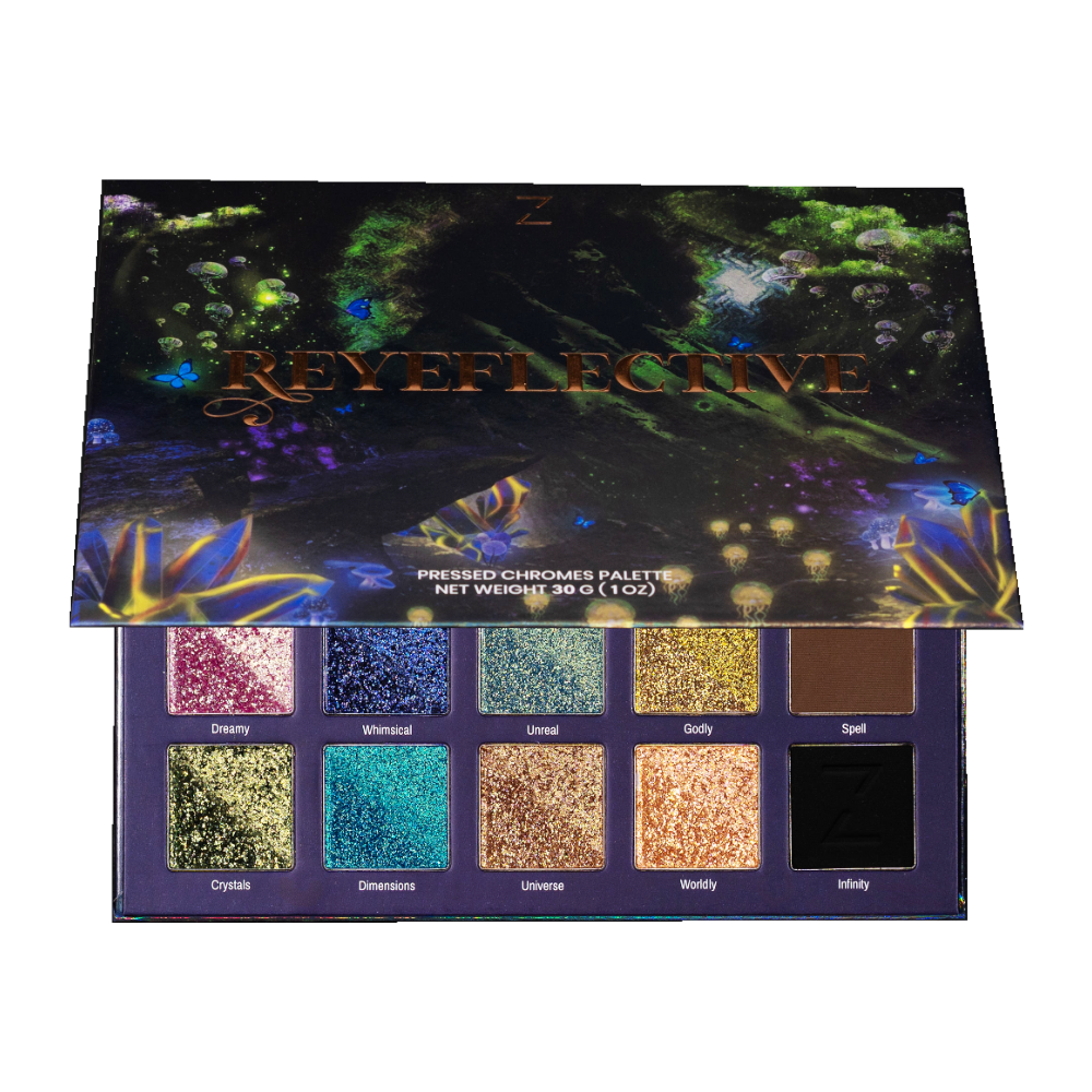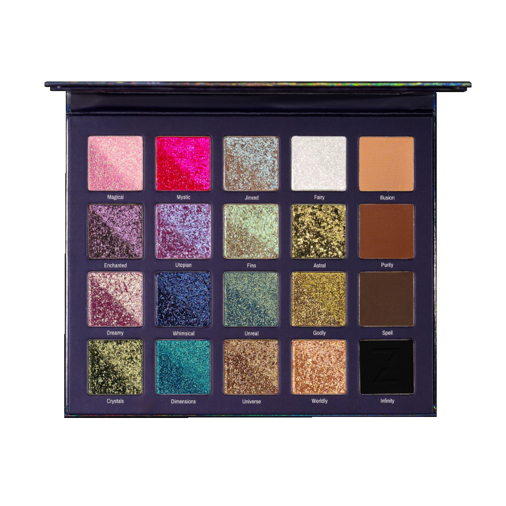 A variety of different shimmer textures for you to play with and having them all in one palette. The palette has a combination of 16 shimmer textures in toppers, foiled and flakes with chrome & multi chrome finishes and 4 cloud matte formulas to achieve any look.